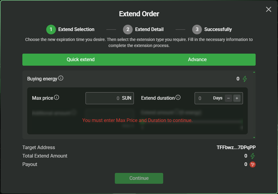 If the ***Additional amount is 0***, you will only be able to extend the duration. You can choose to extend from 1 day to 30 days from now.