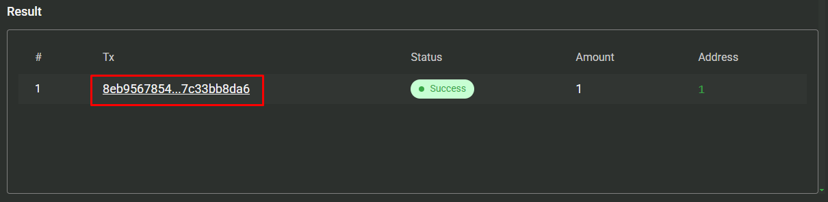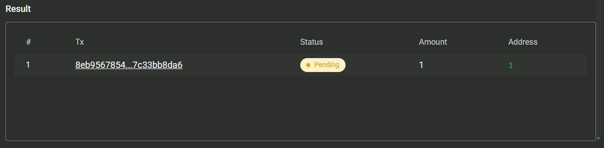 Once the token is approved, the system will automatically move to the Send step.