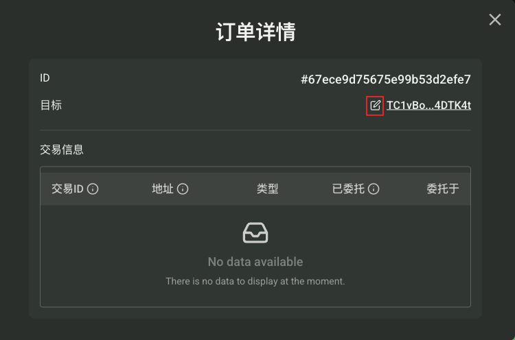 如果订单在创建后的5分钟内未匹配,您可以取消订单。取消订单的费用为5 TRX。