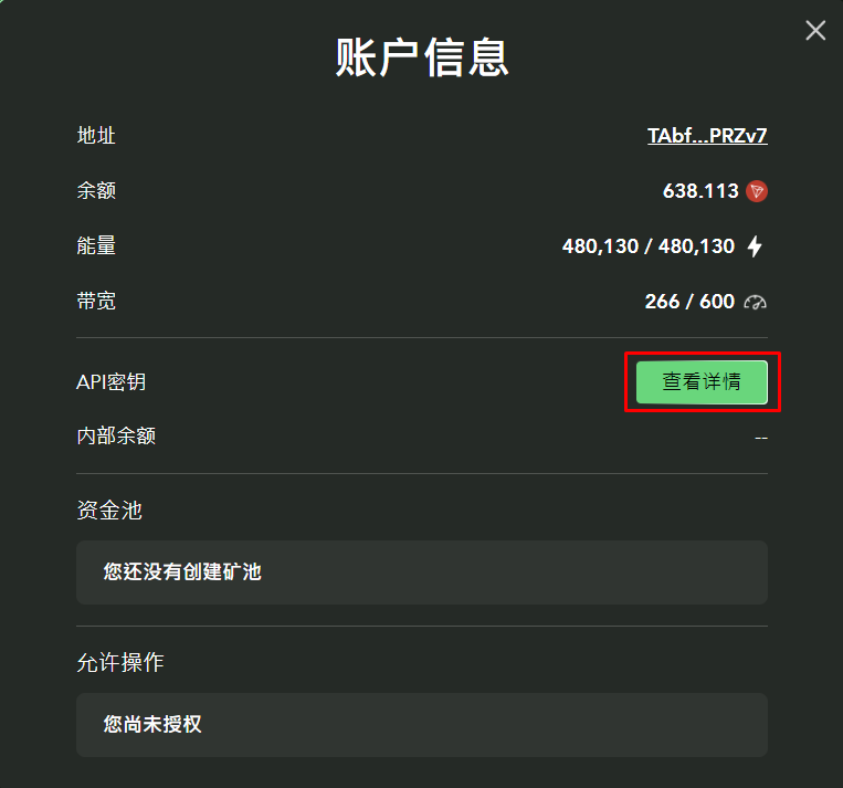 (*) 注意: 如果您想要更改API密钥,您可以选择“撤销”以创建新的API密钥。