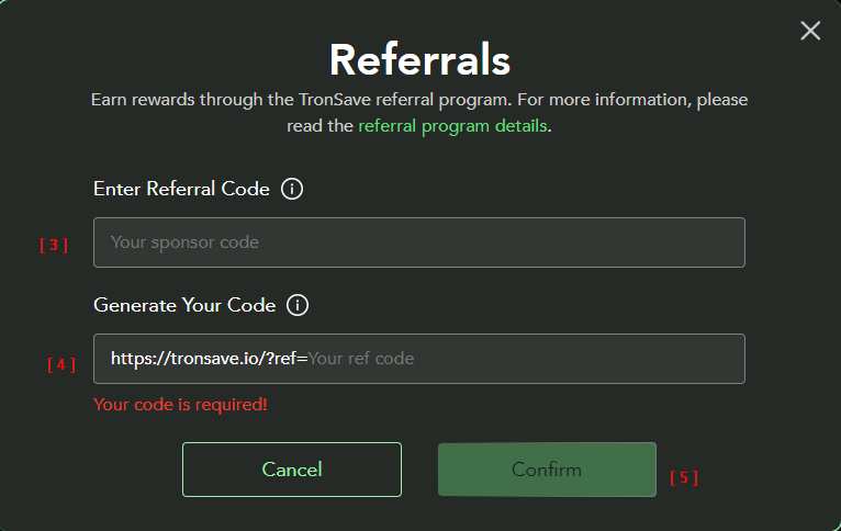 Share your referral link with your friends! If any customer successfully rents energy on Tronsave through your link, you'll receive a **5%** commission based on the total order value.