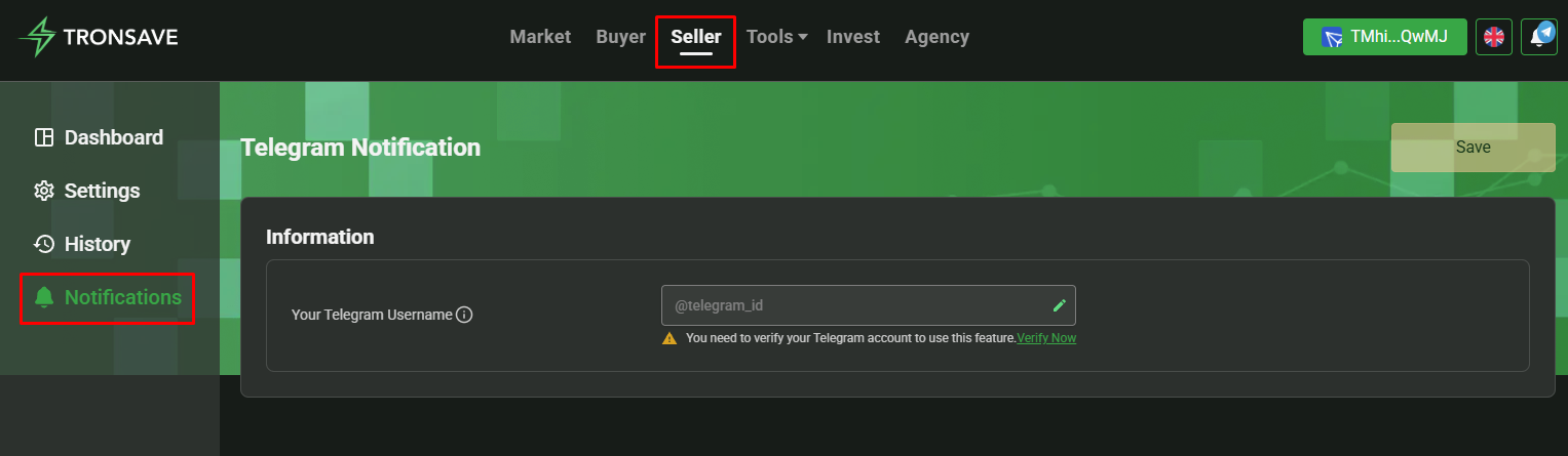 After successfully connecting your wallet ([Guide](https://docs.tronsave.io/faq/how-to-connect-wallet-in-tronsave)), the system will display a dedicated management interface for the Seller.