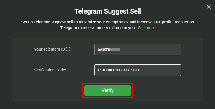 * Enter your Telegram ID in the provided field and click "**CONFIRM**"